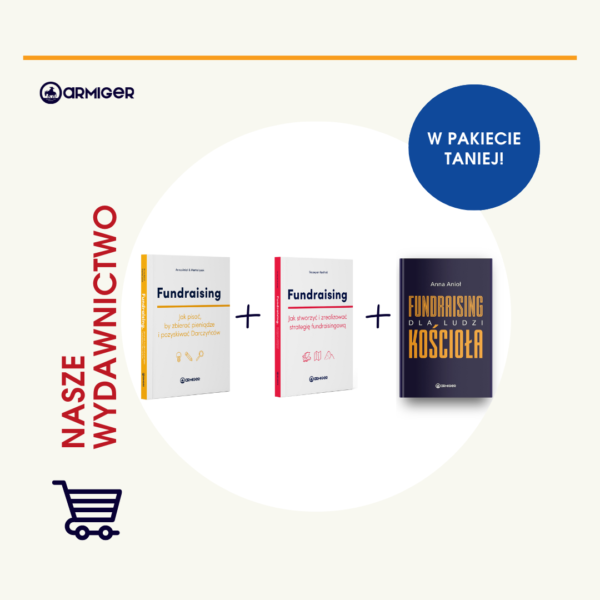 W tym pakiecie znajdziesz najczęściej wybierane pozycje z naszego wydawnictwa: Fundraising dla ludzi Kościoła, Fundraising. Jak pisać, by pozyskiwać Darczyńców i zbierać pieniądze oraz Fundraising. Jak stworzyć i zrealizować strategię fundraisingową.